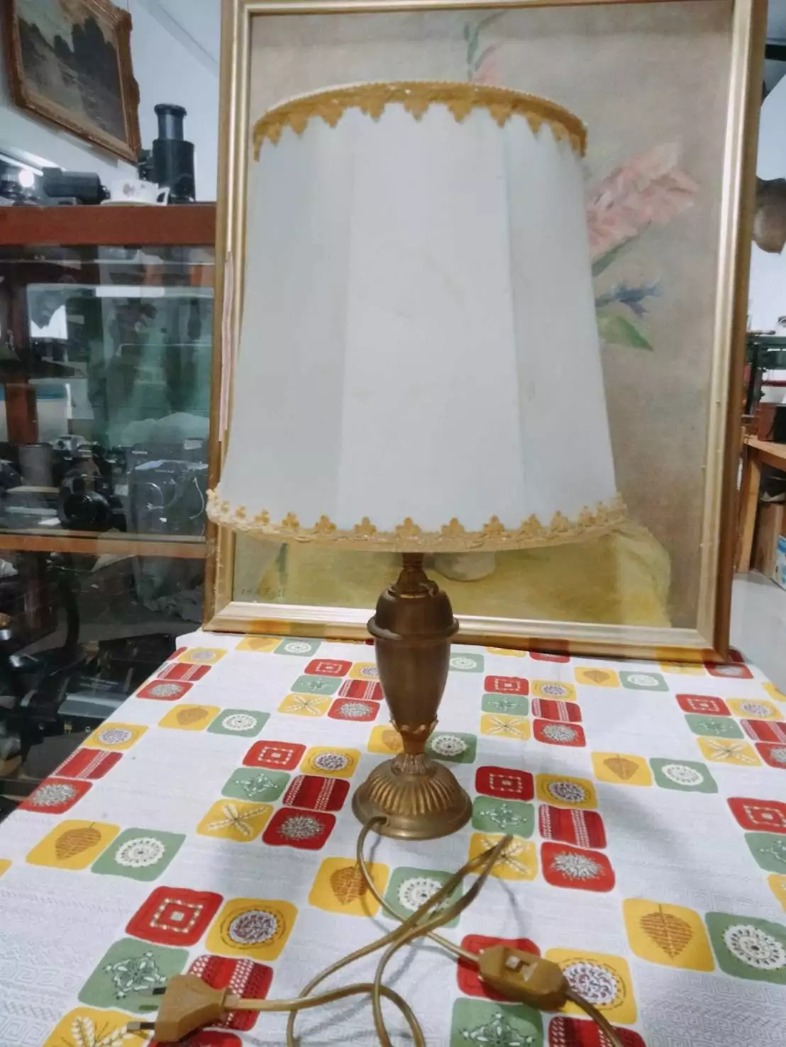 โคมไฟวินเทจฐานทองเหลือง+ผ้าครอบลายลูกไม้ งานยุโรปคลาสสิก เติมเสน่ห์ให้ทุกมุมบ้าน